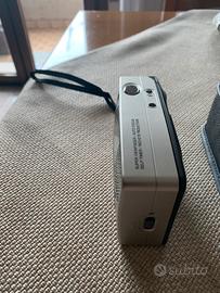 Macchina fotografica grigia/nera come nuova con custodia in pelle originale nera. Funzionante