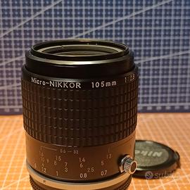 NIKON MICRO-NIKKOR 105mm 2.8 AI- S ottimo sia per macro fotografia che per ritratto dove risulta più inciso del 105 2.5. Ottime condizioni, solo leggerissime tracce di polvere interna, normali per l'età e completamente ininfluenti nell'uso. Lenti in ottime condizioni e diaframma perfetto e scattante. Usabilissimo mediante i vari adattatori con tutte le mirrorless sia Nikon che Sony, Canon Fuji etc