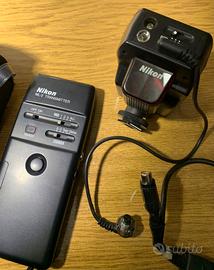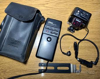 Nikon ML-2 è un telecomando a infrarossi senza fili con un raggio di campo visivo di 100 metri. È composto da due parti: un trasmettitore portatile, più un ricevitore montato sulla o a fianco della fotocamera.