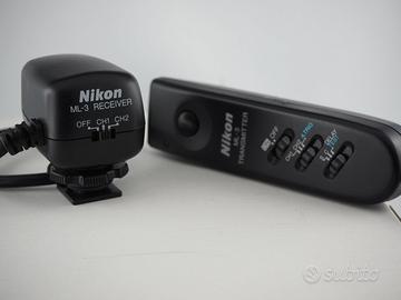 Per fotocamere con terminale remoto a dieci poli. L'ML-3 offre il comando a distanza per due canali separati tramite l'emissione di un raggio LED infrarosso, e permette il funzionamento automatico della fotocamera fino ad una distanza di 8m. Sono disponibili le funzioni di scatto automatico, scatto ritardato, ripresa singola e in sequenza.