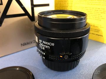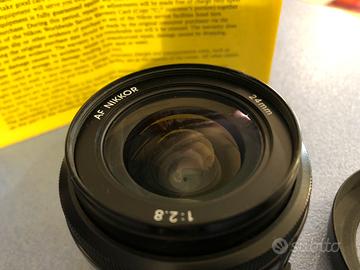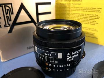 Vendo obiettivo Nikkor 24 mm f/2.8 AF autofocus per Nikon in ottime condizioni estetiche e perfettamente funzionante. Completo di tappi, scatola originale e paraluce in metallo HN-1