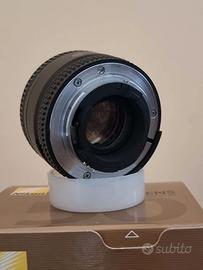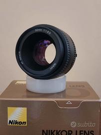 Obiettivo fotografico Nikon Nikkor 50mm f/1.8D, completo di scatola originale. - Obiettivo fisso con lunghezza focale di 50mm. - Diaframma massimo f/1.8. - Compatibile con autofocus. - Scatola originale inclusa. e paraluce