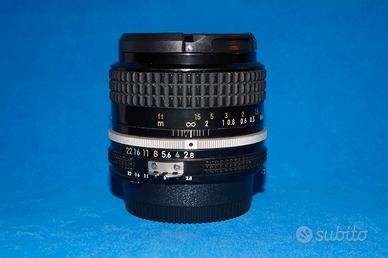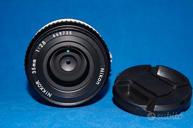 Ottimo 35 mm Nikon, eccellente nitidezza e resa generale, innesto Nikon AI, compatibile con corpi analogici e digitali con tale innesto o con qualsiasi digitale mirrorless con un semplice anello adattatore. Obiettivo senza graffi, muffe o appannamenti, messa a fuoco fluida, selettore del diaframma un po' più duro del solito, diaframma pulito e scattante. Includo tappi. Prezzo NON trattabile, non visibile a Faenza (RA) o spedisco con tuttoSubito.