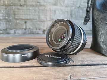 Obiettivo Nikon Ais 35mm/f2.8 Nikkor manuale di vecchia scuola giapponese fatto per durare, tutto vetro e metallo, per intenditori, ghiera di messa a fuoco fluida, diaframmi, perfetti, lenti limpidi senza muffa o graffi, compreso paraluce originale in metallo e sacchettino originale Nikon, perfettamente funzionante. Regalo filtro protettivo. Il prezzo non é trattabile. Preferirei la consegna di persona per poter visionare e provare. Grazie