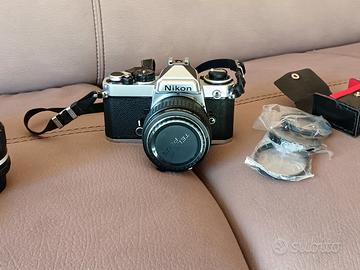Nikon F90x analogica più obbiettivi 35-80 e 28 grandangolo entrambi Nikkor. Nikon FE con obbiettivo 50 mm. Entrambe come nuove e totalmente funzionanti.