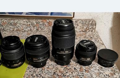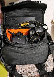 Borsa, camera digitale Nikon D5200, con obiettivo Nikon Dx 18-55mm 1:3,5-5,6 G. Battery pack con 2 batterie, obiettivo Nikon AF-S nikkor 85 mm 1:1,8 G.