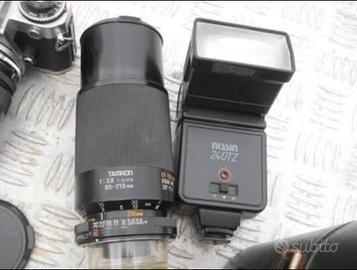 Flash Nissin 240TZ, filtri vari, busta per rullini per metaldetector antiRX.