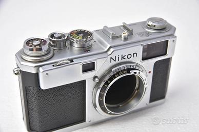 CORPO MACCHINA NIKON S4 "NIPPON KOGAKU TOKYO" N. DI SERIE 6501322 - Anno 1959 - La più rara delle telemetro argento, solo 5895 pezzi prodotti. Bellissima e perfettamente funzionante. LA TELEMETRO SILVER PIU' RARA. BELLISSIMA ESTETICAMENTE E PERFETTAMENTE FUNZIONANTE, PENTAPRISMA PULITISSIMO. HA SOLO UN PICCOLA AMMACCATURA SU UN LATO (VEDI FOTO) SPEDIZIONE CON CORRIERE ESPRESSO. Il materiale è in Italia quindi non ci sono da pagare dazi doganali.