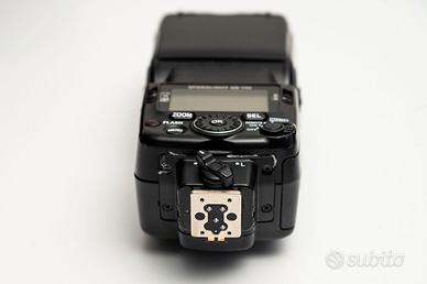 ⚠️ Piccolo difetto estetico: parte in plastica del blocco slitta riparata con colla a caldo, nessuna conseguenza sul funzionamento o la stabilità del flash. Tutto testato, funziona in TTL, Manuale, Slave e Master.