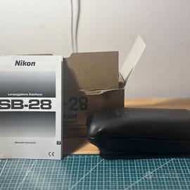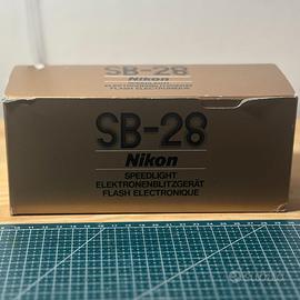 Nikon Speedlight SB-28 + custodia + scatola originale | ottime condizioni Vendo Nikon Speedlight SB-28 in ottime condizioni, perfettamente funzionante in tutte le sue funzioni. 📋 CARATTERISTICHE PRINCIPALI • Numero guida: 36 m (ISO 100, 35mm) — potenza adatta a qualsiasi situazione • Copertura zoom motorizzata: 24–85mm, si adatta automaticamente alla focale impostata • Testa orientabile e basculante: rimbalzo su soffitto e pareti per luce morbida e naturale • Modalità TTL, automatica e manuale • Pannello LCD retroilluminato per lettura immediata delle impostazioni • Tempo di riciclo: ~6 secondi a piena potenza • Alimentazione: 4 stilo AA • Compatibile con tutte le reflex Nikon a pellicola (F100, F90X, F5, F4, ecc.) e utilizzabile in modalità manuale su corpi digitali moderni 📦 CORREDO INCLUSO • Scatola originale Nikon • Manuale di istruzioni originale • Custodia originale Nikon SS-28 (perfettamente adatta all'SB-28) ➕ OPZIONE AGGIUNTIVA Posso includere il cavo di prolunga TTL Nikon SC-17 (1,5m), che consente di utilizzare il flash fuori dalla slitta mantenendo la piena comunicazione TTL con la fotocamera. • Solo flash: € 79 • Flash + cavo SC-17: € 89