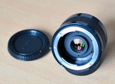 Vendo Duplicatore di focale "Nikon Teleconverter 2X TC-200" il suo utilizzo raddoppia la focale in uso con la sola perdita di due diaframmi. Le immagini finali sono ottime, specialmente se utilizzato con ottiche fisse pre-AI e AI. l'impiegato su una macchina con sistema APS-C avremmo il fattore x 1,5 da considerare. L'accessorio è in buono stato generale. Qualche segno sul barilotto ma lenti e meccanica in eccellenti condizioni. Viene fornito con i due tappi di protezione originali.