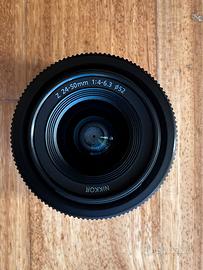 Nikon Z 24-50mm f/4-6.3 (full frame) in ottime condizioni estetiche e funzionali. Acquistato usato da RCE FOTO e utilizzato una sola volta (tenuto in borsa come obbiettivo di emergenza). Completo di paraluce, tappo frontale (sul quale sono presenti due piccoli fori, come da foto, per attaccarlo a una cinghietta) e tappo posteriore. Lenti senza graffi né muffe. Disponibile la fattura di acquisto, scatola assente.