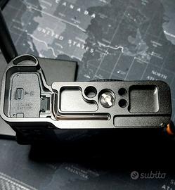 Aggiungo (come si vede dalle foto) una basetta tipo smallrig che favorisce il grip e protegge il corpo quando la si appoggia e una custodia nuova in neoprene marca jjc per il trasporto.