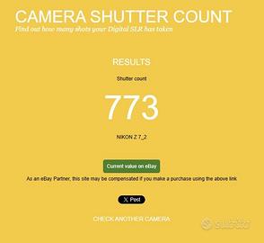 Scatti 773 reali. E' presente lo scontrino per la garanzia e cessione codice Nital per garanzia e registrazione prodotto.