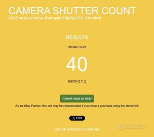 Vendo Nikon Z7 II in ottime condizioni e dal funzionamento perfetto in tutto. Modello usato in esposizione/vetrina con 40 scatti reali e 4 mesi di garanzia Nital residua. Viene con tutto il suo corredo originale, manuali inclusi, mancante solo di scatola. Disponibile a qualsiasi prova. Preferibile scambio a mano ma posso anche spedire. Prezzo ribassato. Eventuali altre info al 3389415013