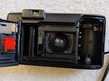 Fotocamera analogica Nikon Zoom 310 AF con lente 35-70 mm Macro, a pellicola 35 mm, punta e scatta, in ottime condizioni, ad azionamento elettrico, esposimetro integrato, automatica, flash integrato. Facile uso e leggera pure essendo robusta.