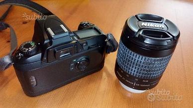 Reflex NikonF75 a pellicola in condizioni ottime, perfettamente funzionante, modello recente appena prima del digitale. Libretti, certificati, scatola originale. Obiettivo 28-100 f3.5-5.6. Vendo a 100 euro e regalo la borsa e il borsello qui sotto descritti. / Borsa rosso bordeaux come nuova, vari scomparti e tasche per obiettivi flash e accessori, cinghie regolabili. Vendo singolarmente a 20 euro e regalo il borsello sotto descritto. / Borsello-custodia blu/panna imbottito con cerniera, per fotocamere compatte. Tasca esterna e interna, fibbia passacintura. In buone condizioni, vendo singolarmente a 5 euro. Roberto cell.3287661944 Trento - Marignano