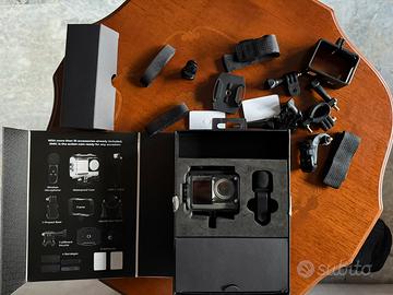 -VENDO PER INUTILIZZO-NILOX SPORT - Action Cam XMIC con microfono wireless - VIDEOCAMERE Il doppio display a colori facilitera le inquadrature anteriori per scattare foto e video in alta qualità, ma la vera novità è il microfono wireless che ti permetterà di ottenere una maggiore qualità del suono nei video fino a 5k30fps, anche in ambienti rumorosi fino ad una distanza di 10 metri. La cam NILOX 4KUBIC ha in dotazione un case impermeabile che la rende versatile in ogni esperienza avventurosa, dagli sport invernali alle immersioni fino a 30 metri di profondità. Gli accessori inclusi nella confezione ti permettono di usare la cam in ogni situazione: 1 Custodia protettiva, 4 supporti diversi, 1 supporto per manubrio, 1 cover di protezione, 2 Adesivi, 4 tipi diversi di strappi.