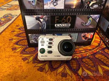 Action cam Nilox F60EVO in ottimo stato, unico difetto, si è rotto il pezzettino che tiene in sicurezza lo sportellino degli attacchi dei cavi, ma non ne compromette lo stato.