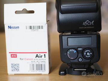 Vendo come nuovo flash Nissin i60a con commander Air 1 per Canon. Manca solo la scatola del flash, per il resto ci sono tutti gli accessori originali.