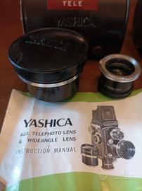 tele obbiettivo e grandangolare YASHICA con custodia in pelle originale e libretto di istruzioni. in perfette condizioni