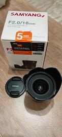 Come nuovo usato raramente vendo bellissimo Samyang 16 mm fisso F2.0 angolo di grado di 80°