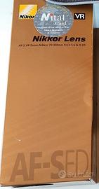 NIKKOR AF-S 70-300 VR, stabilizzatore d'immagine, lenti in perfetto stato nessun difetto, funziona perfettamente, compreso di paraluce, coperture anteriore e posteriore, scatola tutto originale Nikon.