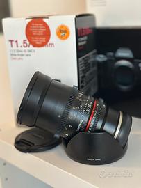 Vendo obiettivo Samyang 35mm T1.5 Cine Lens con attacco Sony E-Mount, in condizioni perfette, pari al nuovo. È stato utilizzato pochissimo e sempre con la massima cura.