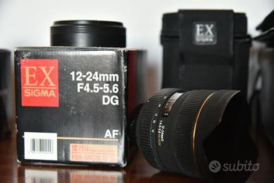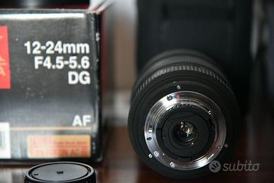 Sigma 12-24mm f/4.5-5.6 EX DG HSM per NIKON FF. Imballo custodia e paraluce.