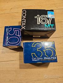 obiettivo ZEISS Distagon 35mm, attacco contax / yashica, in perfette condizioni, completo di imballi originali. 260€ solo obbiettivo; possibilità di kit con corpo macchina CONTAX 167MT e obiettivo ZEISS Planar T* 50mm F1.7, tutto a 480€