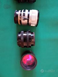 - Obiettivo Canon Lens FD 50mm 1:1.8 - Obiettivo Canon Zoom Lens FD 35-70mm 1:3.5-4.5 - Obiettivo Soligor C/D Zoom+Macro f=28-80mm 1:3.9-4.9 - Obiettivo Elmo Zoom Lens 1:1.8 f=8 8-50mm - Obiettivo Catadiottrico russo CCCP 3M-5A 8/500 + 3 lenti con custodia di pelle (vedi foto)