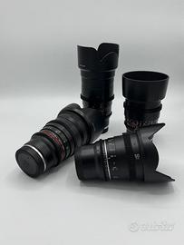 Vendo 4 obiettivi cinema Samyang VDSLR MkII Cine per Sony E-mount, in condizioni pari al nuovo.