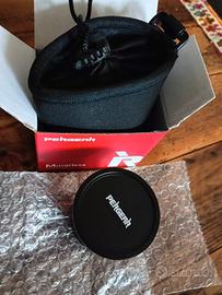 obiettivo Pergear FX 12mm f 2 con attacco x mount per Fujifilm. Obiettivo completamente in metallo, con paraluce. Nuovo. La confezione comprende paraluce, fodero protettivo per trasporto e materiali per pulitura.