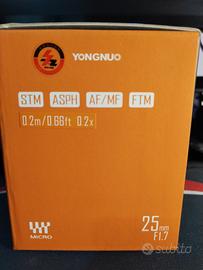 vendo obiettivo yougnuo 26mm f1.7 pari al nuovo . Scatola originale
