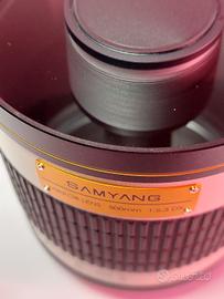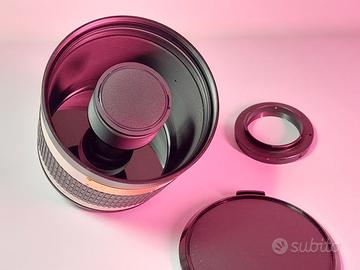 Vendo obiettivo catadiottrico mirror lens SAMYANG per fotocamere refrex Nikon, focale 500 mm f 1:6.3, focus manuale, corredato di adattore.