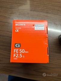 Obiettivo Sony linea G 50mm 2.5 Diametro l’ente 49cm Molto leggero Molto nitido Ghiera diaframma Tasto per switch AF - MF