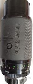 Teleobiettivo 70/210 Vivitar serie Qdos + flash, nelle foto sono presenti tutte le caratteristiche tecniche sia dell'obiettivo che del flash se occorre invio altre foto, l'obiettivo con un adattatore può essere montato tranquillamente su altre fotocamere