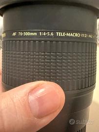 Obiettivo attacco Canon- Tamron af 70/300 con funzione macro. Usato poco, ottime condizioni, niente muffe. Vendo per cambio corredo fotografico. Si vende con formula visto e piaciuto Scambio esclusivamente a mano a Roma - zona Ostia Antica. Non spedisco. No vendita a distanza. Euro 110,00