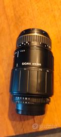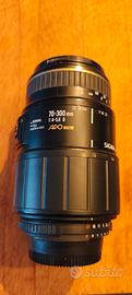Obiettivo 70-300 Sigma per fotocamera Nikon con custodia in pelle
