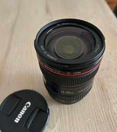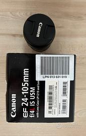 Vendo obiettivo Canon 24 105 f 4 originale, dotato di confezione originale, paraluce e custodia in camoscio e pelle.