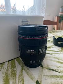 Obiettivo canon 24-70 con paraluce lente EF 1:4 con stabilizzatore