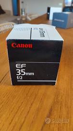 Obiettivo Canon Ef 35mm f/2. Obiettivo Canon in ottime condizioni con scatola originale. Obiettivo leggero e duttile a più tipologie di foto, dalla strett, al paesaggio, al ritratto.
