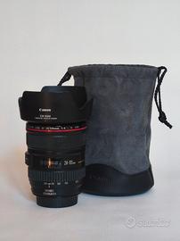 vendo obiettivo Canon EF 24-105 F4 serie L usm con image stabilizer. completo di coperchi paraluce e sacchetta originale. l'obiettivo è usato poco ma in condizioni ottime, funziona perfettamente. Ha dei segni di usura sul coperchio e sul paraluce ma non sull'obiettivo e sulla lente.