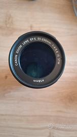 Vendo obiettivoCanon EF-S 55-250mm f/4-5.6 IS STM constabilizzatore d’immaginee funzionemacro, perfetto per foto naturalistiche, ritratti e dettagli a distanza.