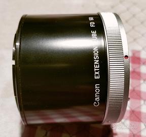 Obiettivo Canon FD 100 mm f 4,5 macro; lenti prive di graffi, muffe e condensa all' interno; filtro UV; tubo di estensione; il tutto perfettamente funzionante. Rapporto di ingrandimento 1:2, con tubo di estensione 1:1. Può essere montato anche su fotocamere digitali EOS EF, con apposito anello con o senza lente intermedia. Nel 1° caso mantiene la messa a fuoco fino all'infinito; nel 2° caso no, ma conserva integra la qualità dell'ottica (consigliato per le riprese macro)