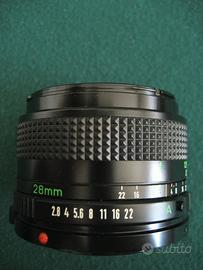Ottimo obiettivo per fotocamera Cannon serie FD 2,8 x 28mm con collare di serraggio lenti perfette SMC limpide senza segni di umidita o muffe ; diaframma asciutto e scorrevole , ghiere fluide , portafiltri senza segni o ammaccature in breve " come nuovo".