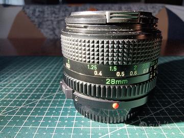 Vendo obiettivo manuale Canon , attacco FD, 28mm , apertura f2.8 , in ottimo stato , ghiere fluide.