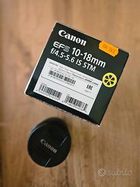 Canon Obiettivo Ultragrandangolare con Zoom, EF-S 10-18 mm f/4.5-5.6 IS STM, Nero/Antracite Pari al nuovo, scatola inclusa.