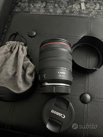 Vendo obiettivo canon RF24-105mm F4 L’obiettivo e in perfette condizioni nessun segno nessun graffio, completo di suoi accessori trane la scatola motivo del acquisto nel kit