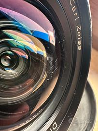 Cone da titolo contax zeiss distagon 18mm f4 in ottimo stato. Comprato cosi come vedete in foto. Infatti la lente frontale presenta dei graffi (Foto numero 2) che poco influiscono sulle immagini visto i 18mm. Ottica nitidissima e venduta a questo prezzo proprio per questo difetto.